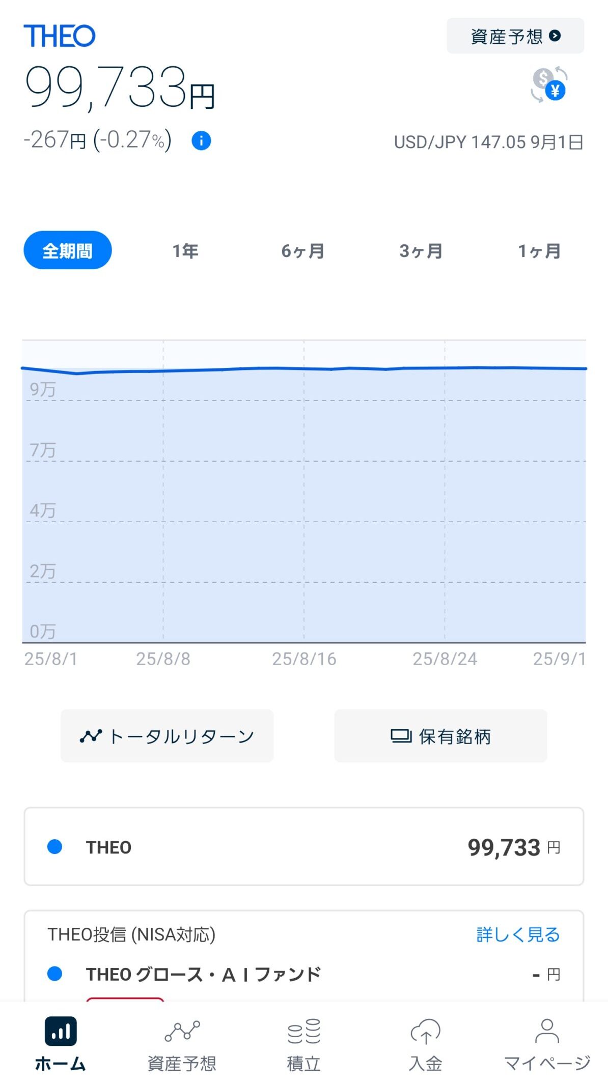 THEO | -181円 | -91円 | -272円 | -0.27% |