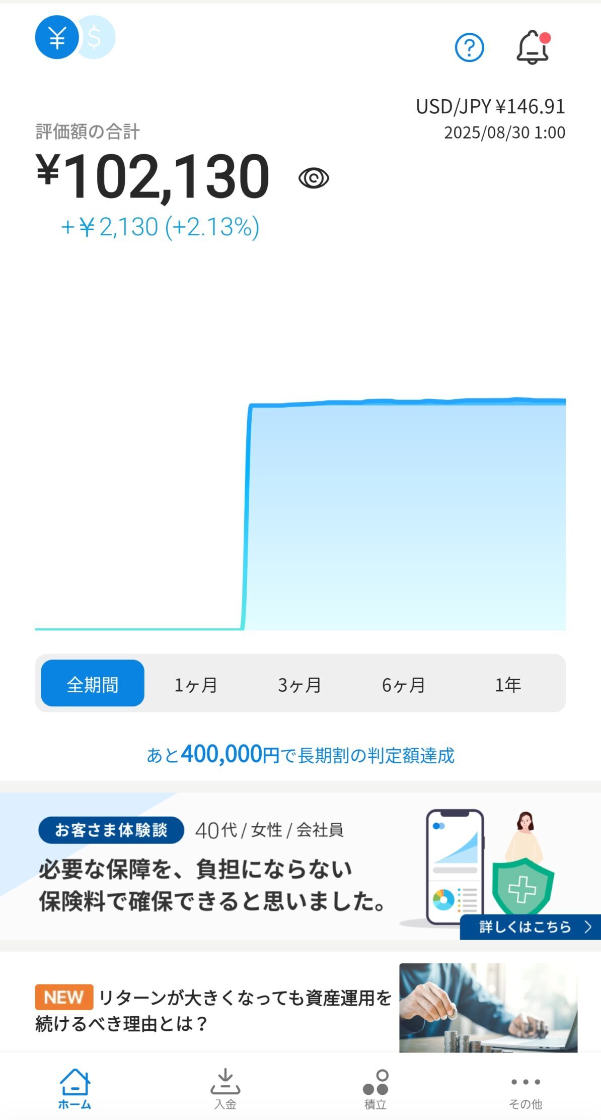 +3.28%。オルカンをちょっとだけ上回り、堅実な優等生タイプ。 - WealthNavi