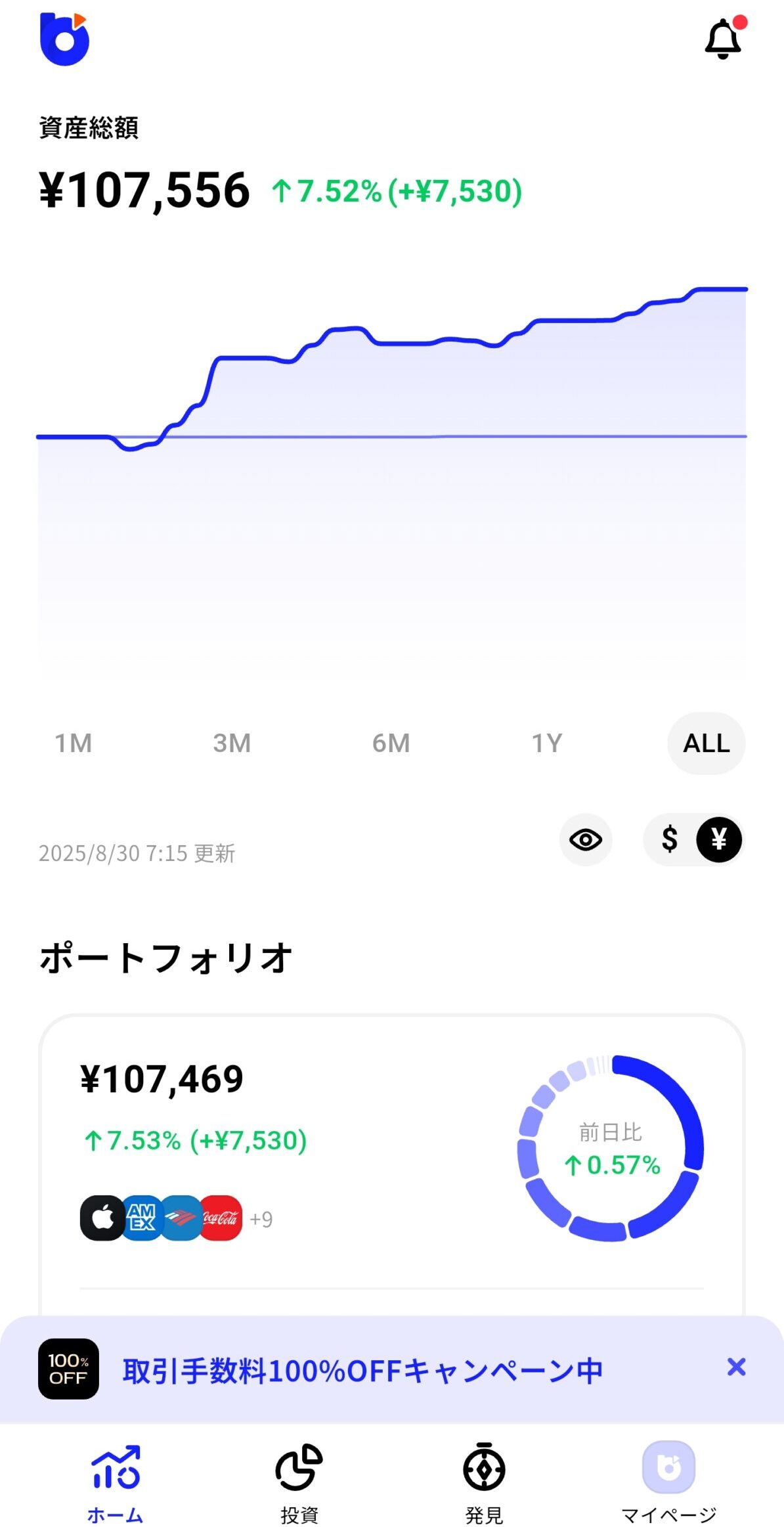WealthNavi | +2,562円 | -93円 | +2,469円 | +2.47% |