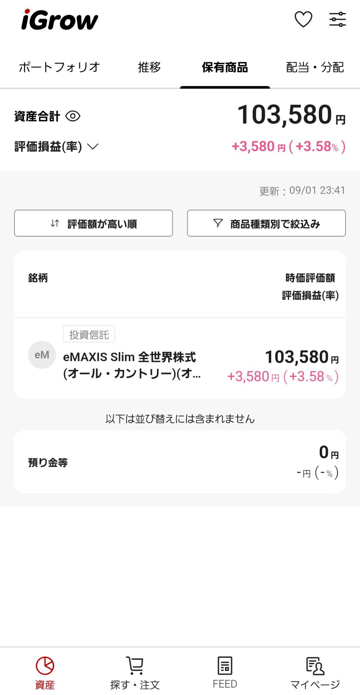 SUSTEN | 103,282円 | +3,282円 | +3.28% |