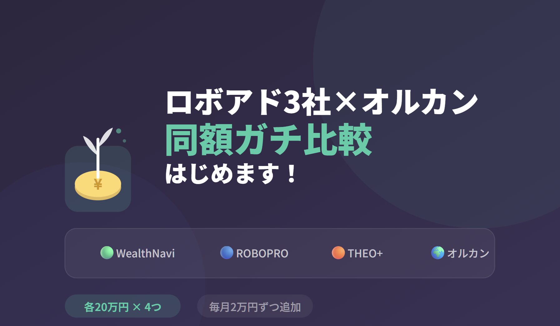 今日から、ロボアドバイザー3社+オルカン(全世界株式)の合計4つに、それぞれ20万円ずつ投入して「同額ガチ比較」をスタートします!